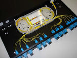 Pannello patch estraibile su binari per fibra ottica con 24 porte per inserimento degli adattatori ST - SC - LC - MPO